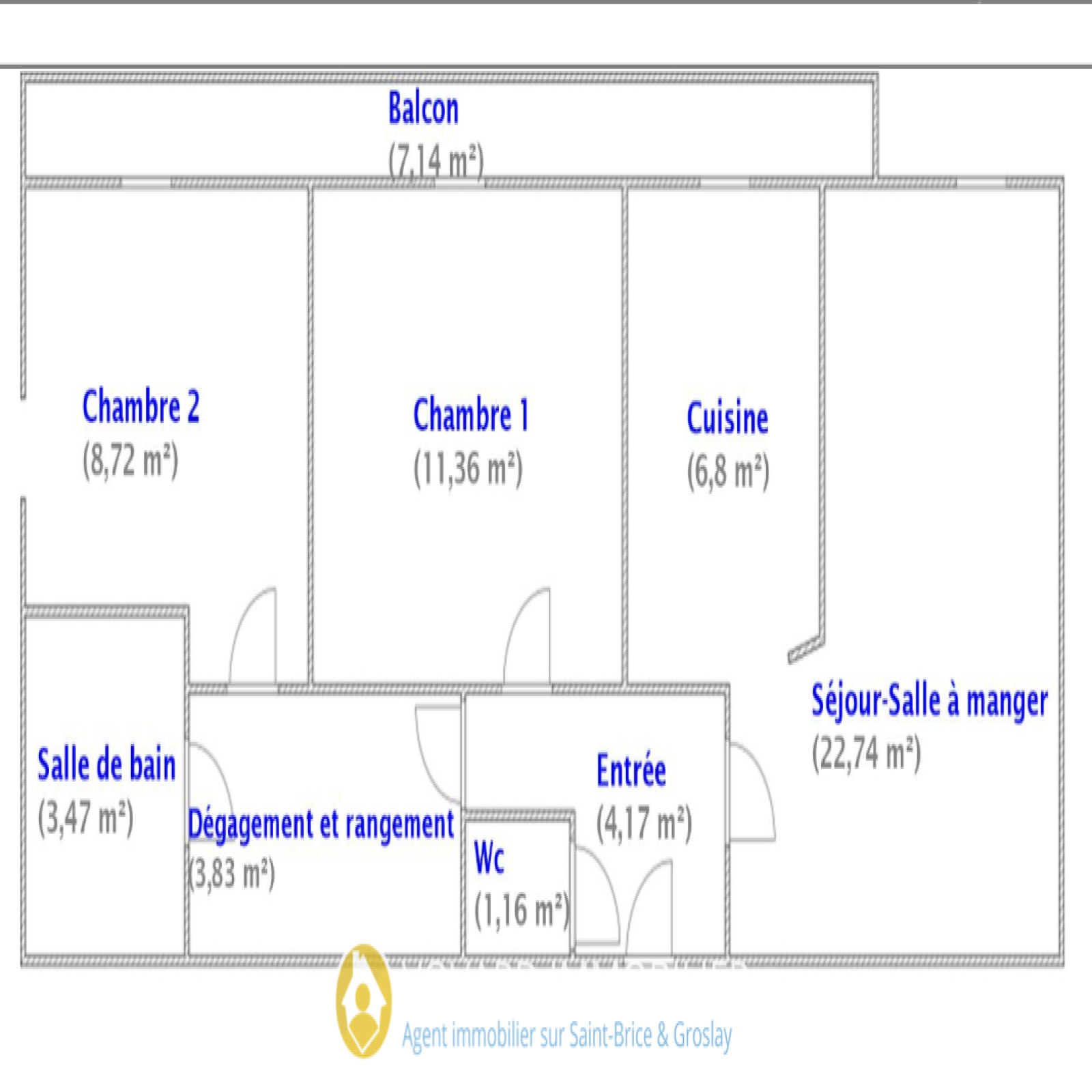 L’appartement se compose d’une entrée desservant un séjour-salle à manger de 22,74 m² ouvrant sur un agréable balcon de 7,14 m², d’une cuisine indépendante, de deux chambres de 11,36 m² et 8,72 m², d’une salle de bains et de WC séparés.