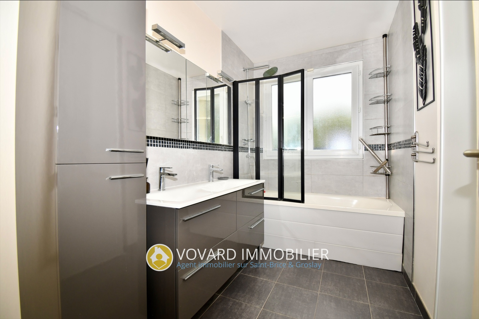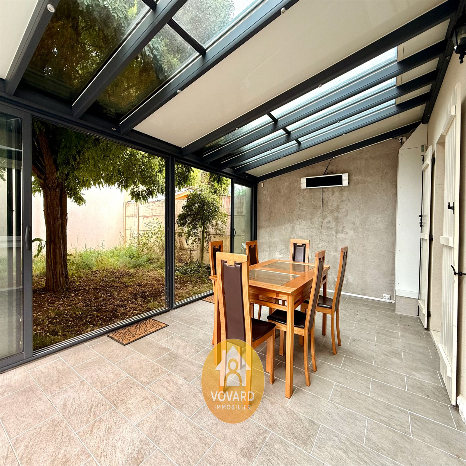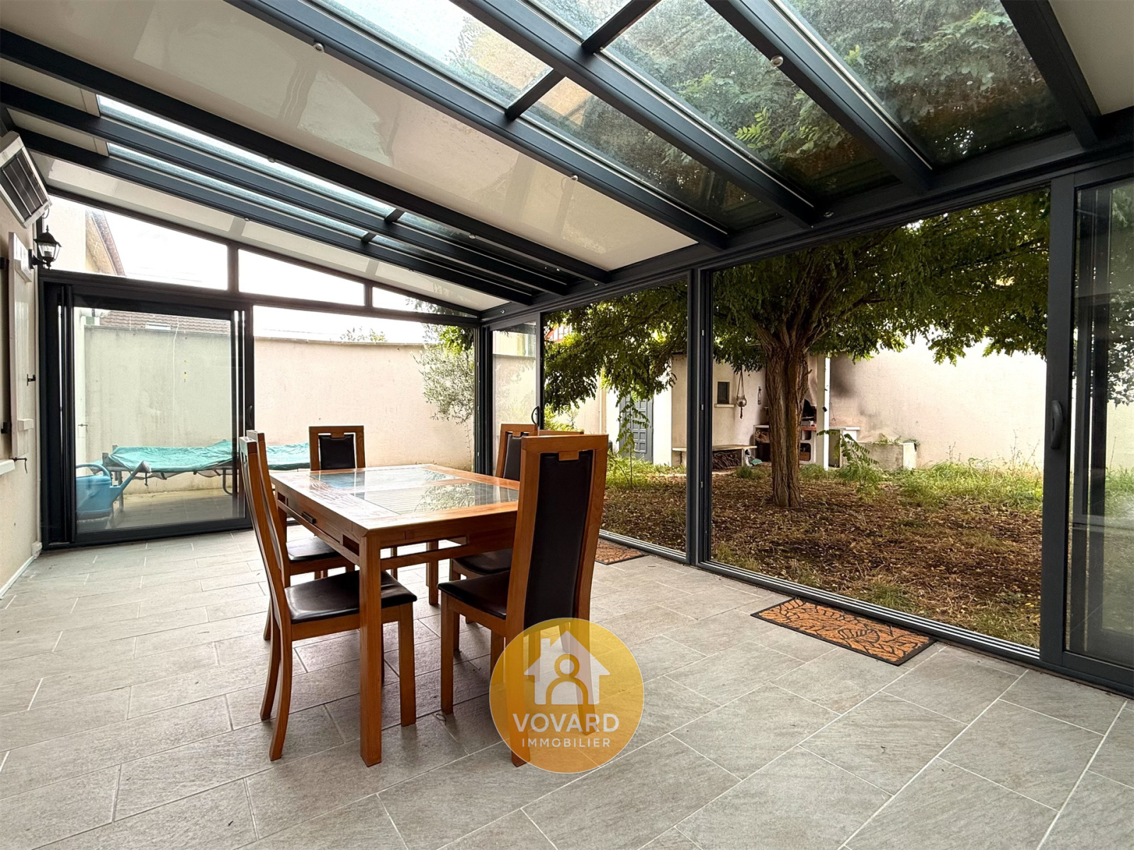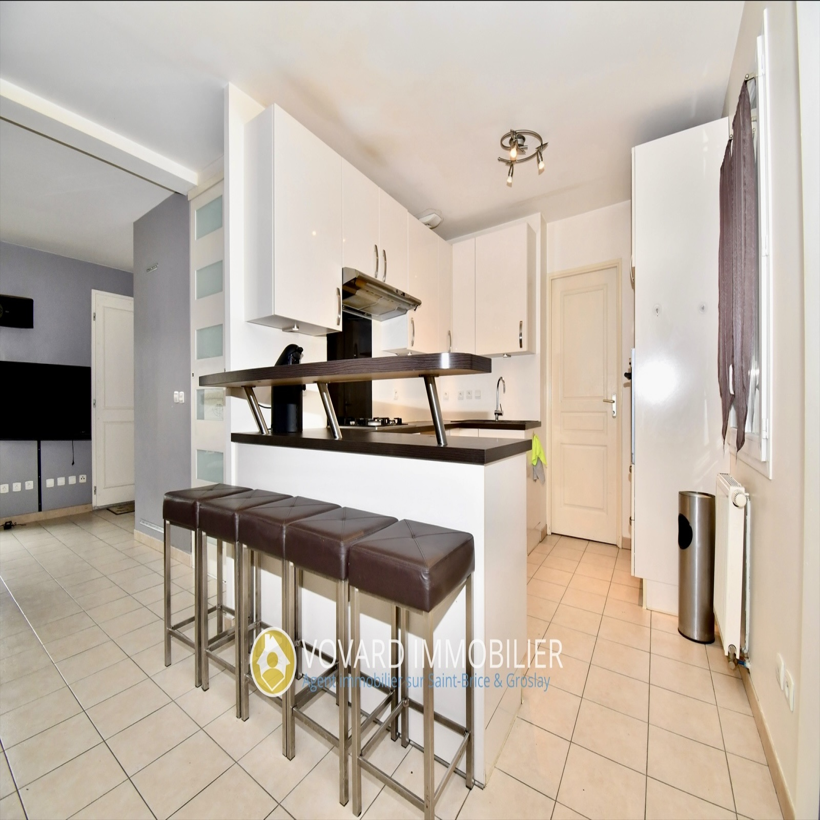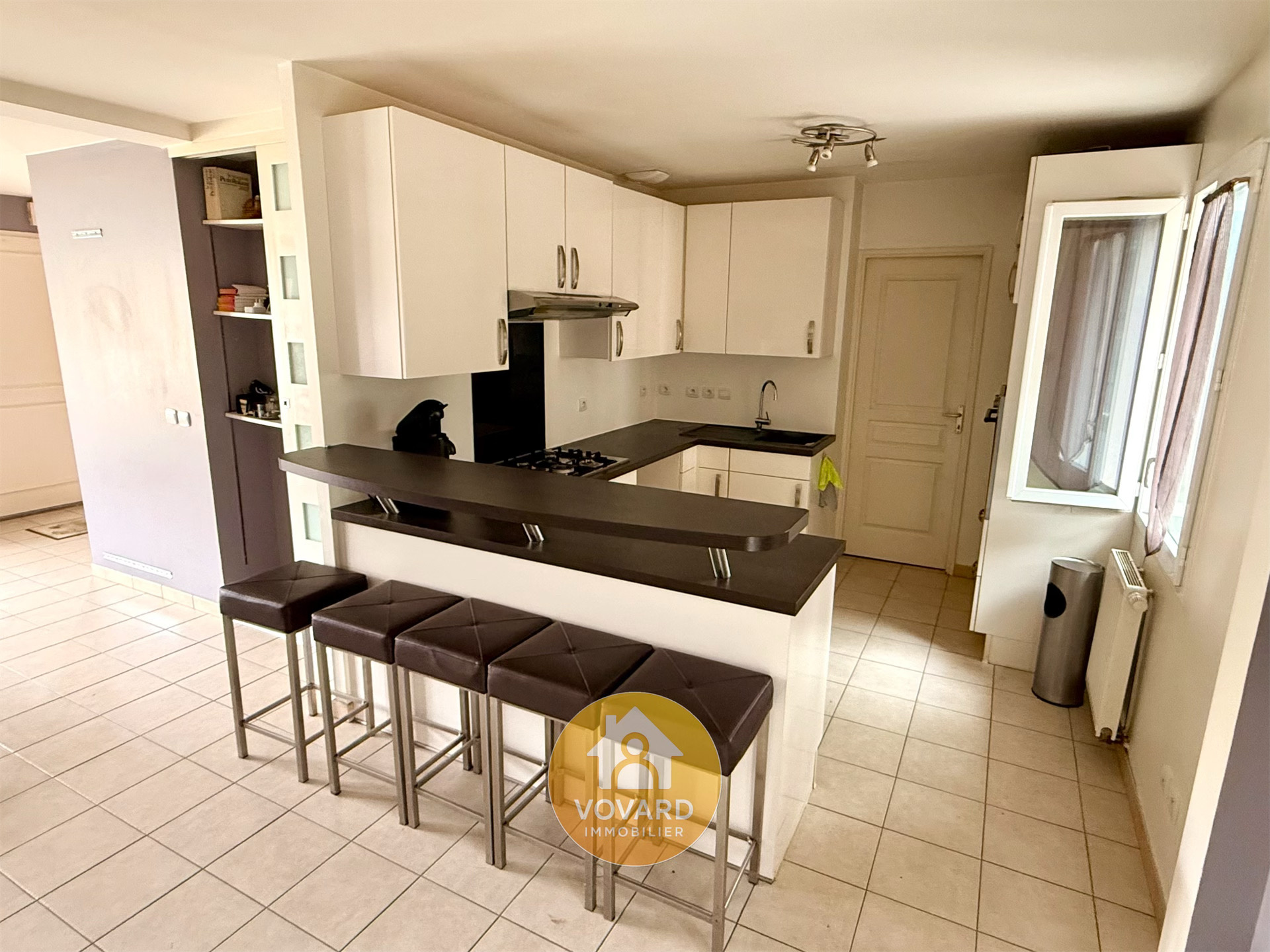 VOVARD IMMOBILIER tel : ** 01 39 86 06 70 ** vous propose - A vendre - pavillon type F6 - 4 chbs édifié en 2010 au cœur du vieux St Brice quartier Du clos du château. Il comprend une entrée avec placard, un séjour double avec cuisine américaine, le tout, donnant accès à une véranda de 25 m² chauffée, une lingerie, WC,