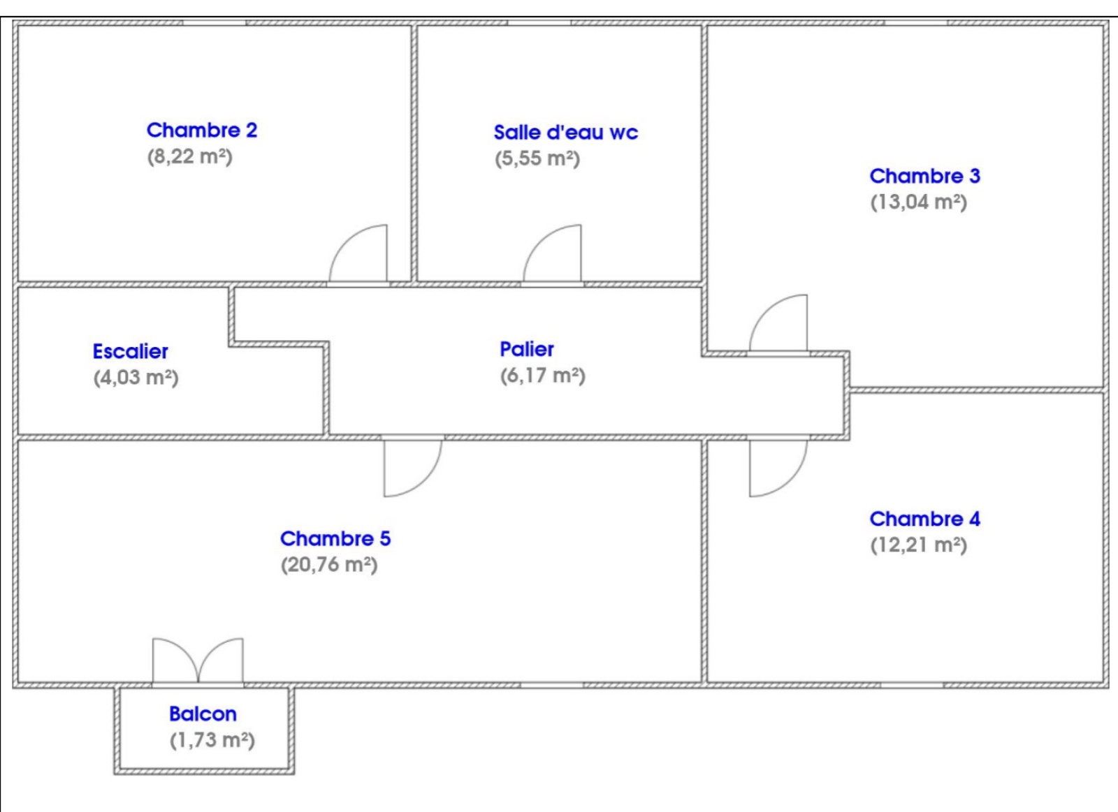À l’étage se trouvent 4 chambres, dont une spacieuse chambre parentale de 20,76 m², ainsi que des chambres de 13,04 m² et 12,21 m², une salle d’eau avec douche à l'italienne - wc et un balcon,