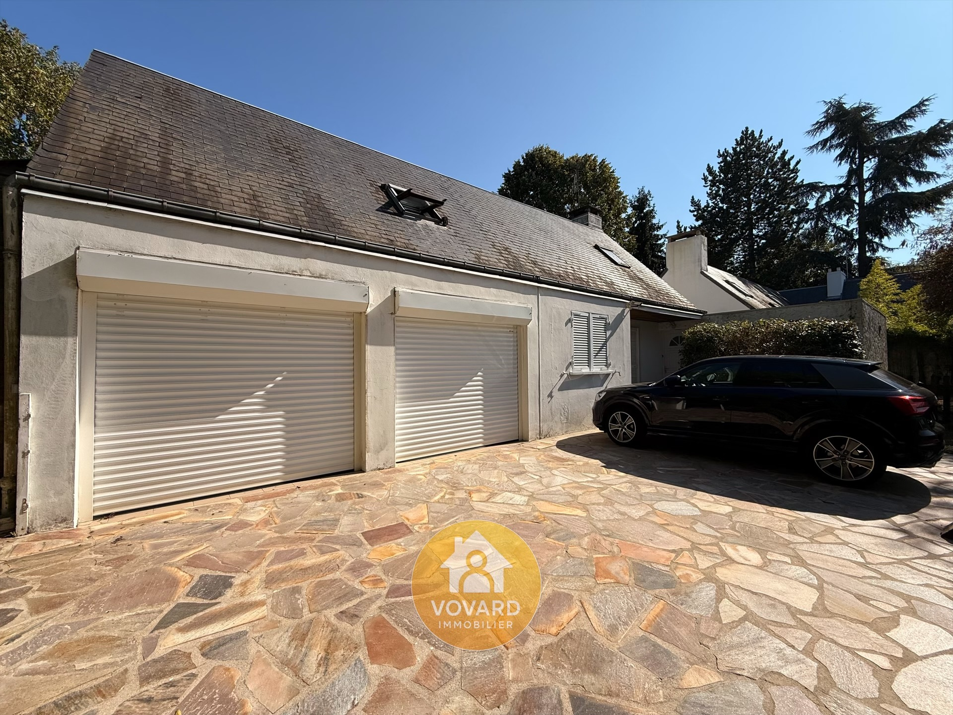 Annexes et stationnements : Grand garage double de 30 m² - Possibilité de stationner 2 véhicules supplémentaires devant la maison. - Jardin paysager, sans vis-à-vis, avec espace familial et convivial.