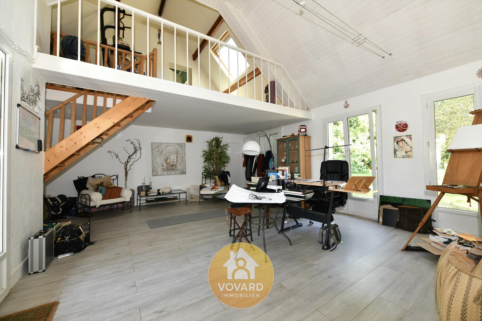 Rez-de-chaussée : entrée, cuisine, salle à manger, vaste salon, une chambre, salle de bains, toilettes et cellier, Étage : une belle mezzanine offrant un espace de vie supplémentaire et desservant une grande chambre, Surplomb du salon : accessible par un autre escalier, deux chambres supplémentaires complètent l’espace nuit.
